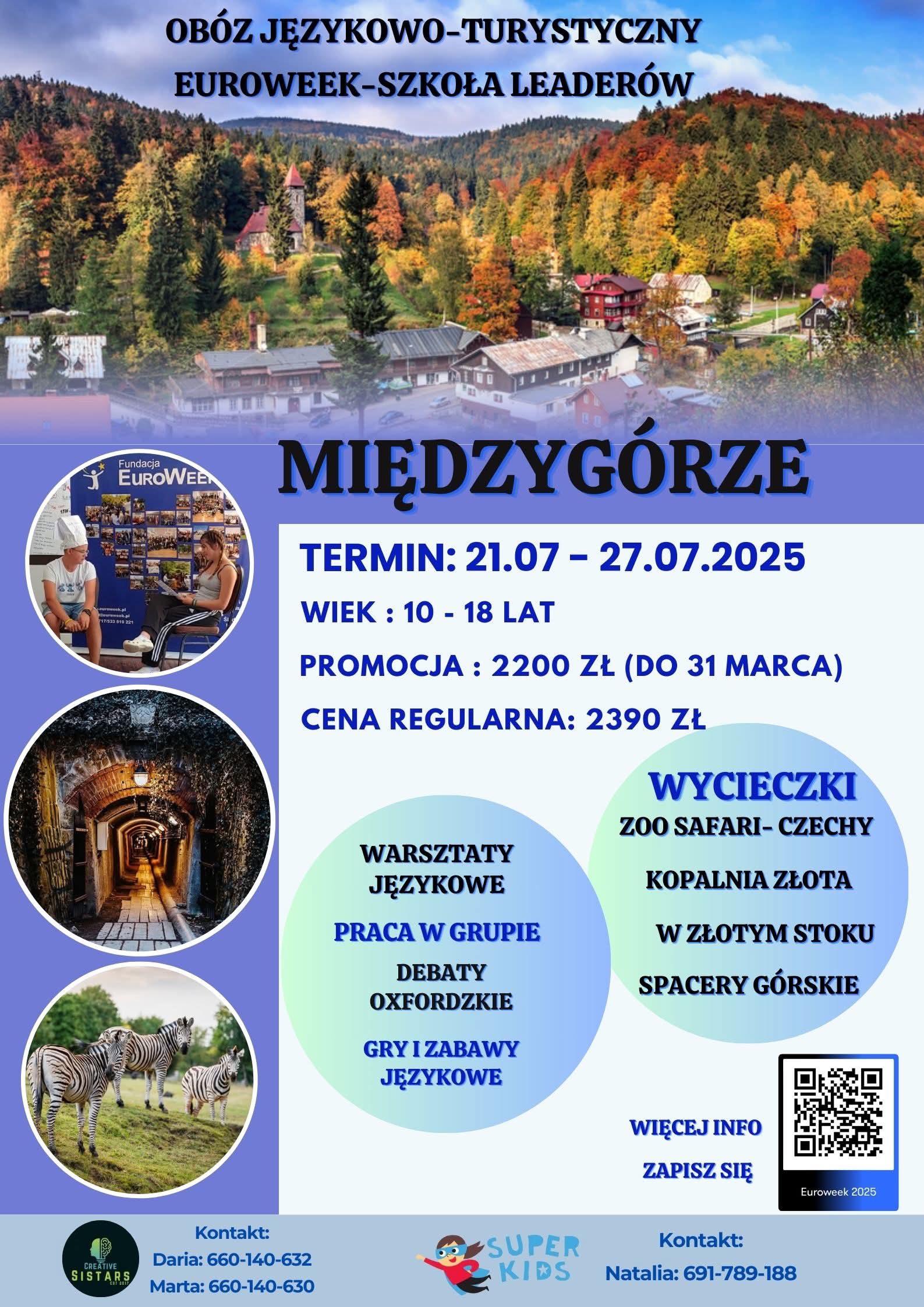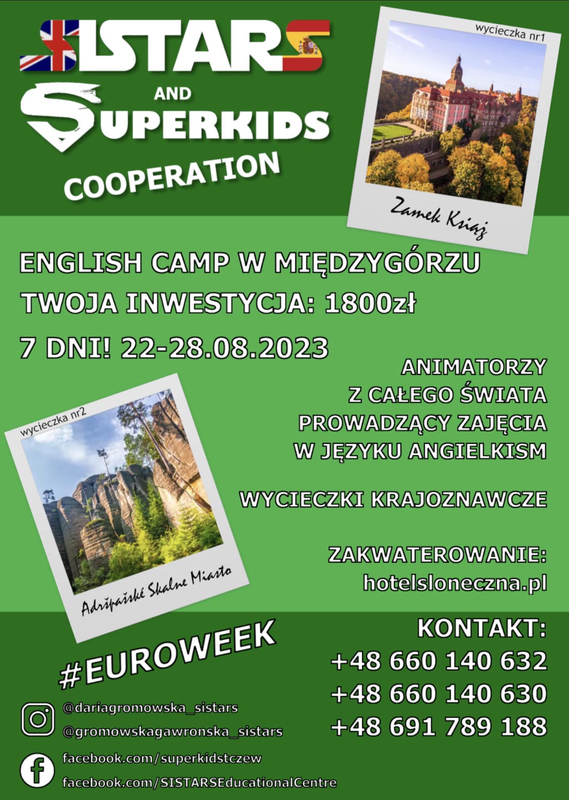 Euroweek is a School of Leaders, where kids and adults have a chance to meet volunteers from all over the world. They can improve not only their English speaking skills but also public speaking, while learning, for example, traditional dances or other aspects of the culture of the country of the particular volunteer. The camp takes place in a beautiful scenery of the polish mountains. Last year we went to Lądek Zdrój and we learned about the traditional dances of Zimbabwe.